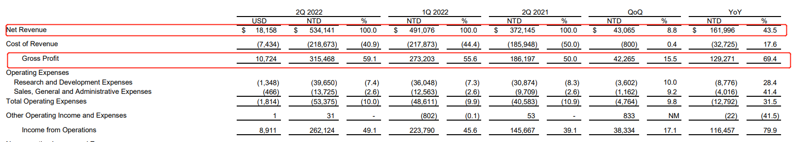 和营收相比,台积电二季度的利润更加令人欣喜。财报数据显示,该季度台积电净利润录得79.4亿美元,同比暴涨76.4%,大幅超过市场预期。毛利润和毛利率表现同样抢眼,后者同比提升9个百分点至59.1%,不仅超过彭博经济学家预测的56%-58%的预期,更创下台积电近26年来的最高水平。