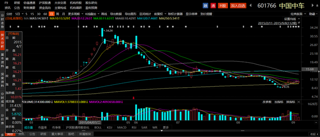 4月7日复牌后,在短短十个交易日内,中国中车股价(前复权)由复牌前的14.74元涨到34.24元,翻了2.3倍。