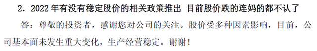 面对业绩和股价的双重打击,有投资者直言,“股价跌的连妈的都不认了”,公司有没有稳定股价的相关政策推出?