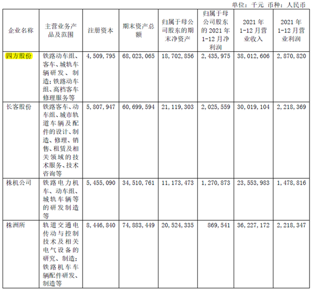 据中国中车年报,2021年,中车四方营业收入为380亿,归母净利润24.36亿。