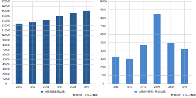 与此同时,2016-2021年这六年间,我国高铁营业里程由2.2万公里增加至4万公里,铁路营业里程由12.4万公里增加至15.07万公里。