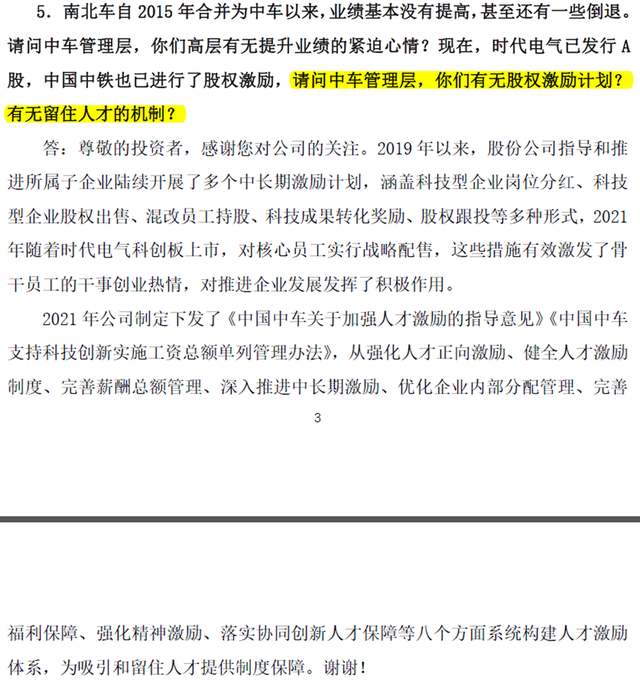 关于留住人才的机制,也是业绩说明会上投资者重点关心的问题之一。