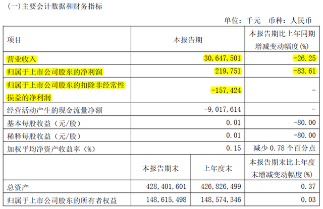 据今年一季报,中国中车营业收入为306亿,同比减少26.25%;归母净利润2.19亿,同比减少83.61%;扣非后更是录得亏损,为-1.57亿,去年同期该数据为9.84亿。