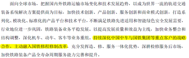 甚至在业务描述上,中国中车也把“深化与国铁集团战略合作”作为重点方向。