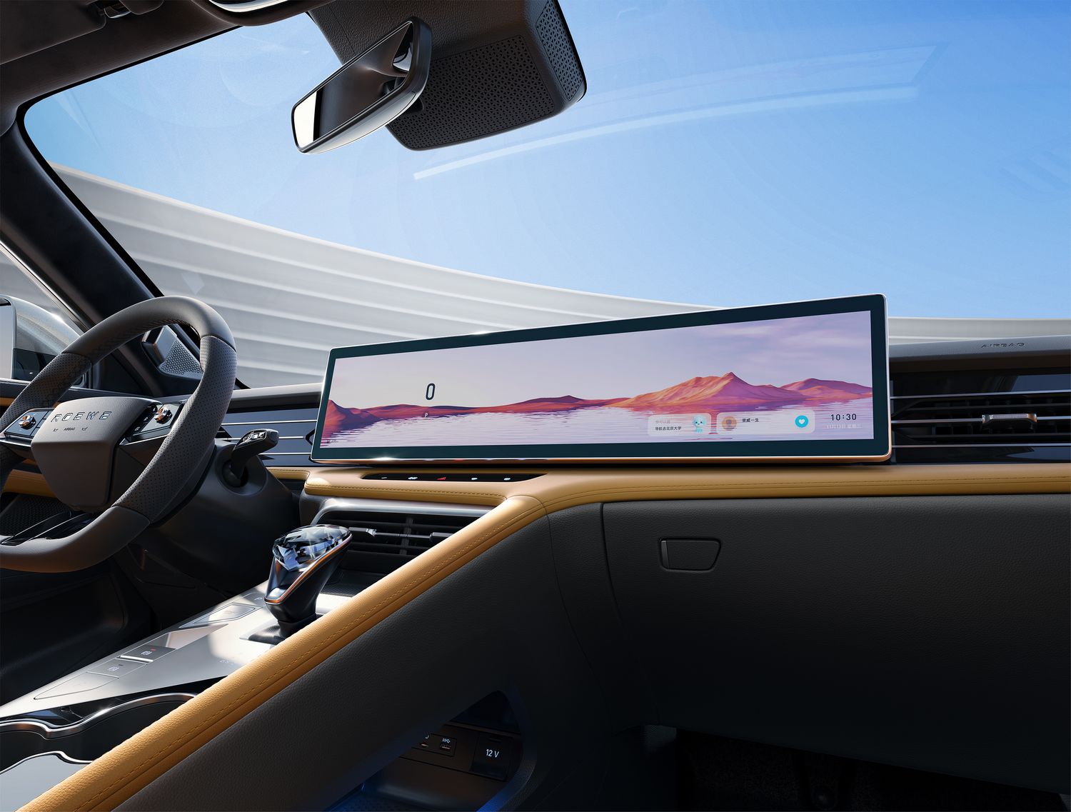 屏幕在主副驾搭载不同交互形式,驾驶信息,娱乐信息,智能影院等自由切换。其还结合了屏幕来回滑动的理念,增加了回型饰条,让内饰视觉空间更宽广,也让滑移距离在驾驶掌控范围之内。