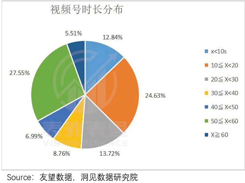 而为了承接泛知识内容的深度,其试图跳出短视频时长的限制。数据显示,2021年视频号中,50-60S视频占比最高,已经占比达到27.55%。