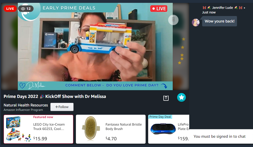 亚马逊直播间中,一名主播在展示乐高玩具,而只有12人在线观看。图源:亚马逊官方网站