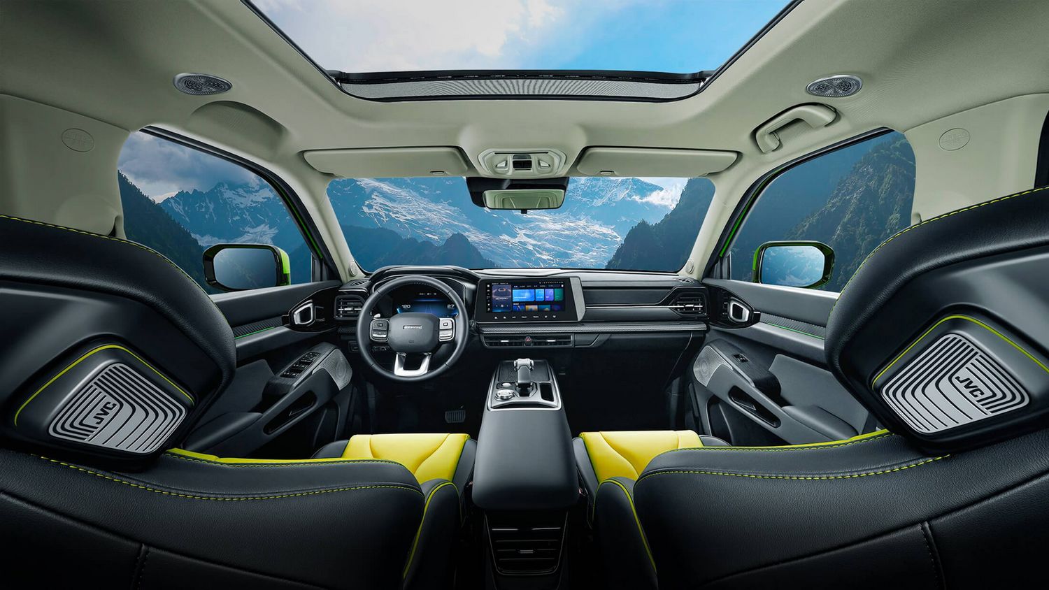 哈弗酷狗的“4D燃音座舱”配备来自JVC的18个立体环绕声扬声器,拥有车载920W的独立数字功效,并在前排座椅加入座椅律动功能,可根据音乐节奏自动调节振动的节奏。