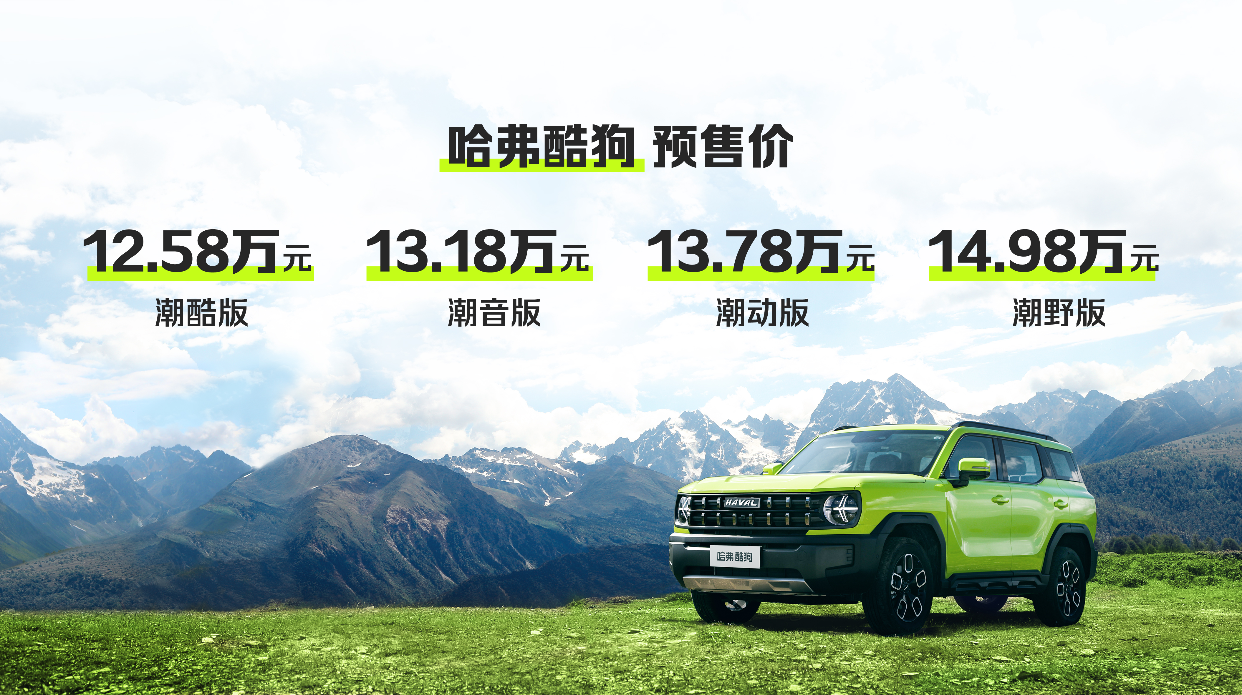 7月18日晚间,哈弗酷狗开启预售,推出四款车型,预售价为12.58-14.98万元。该车是哈弗旗下全新紧凑型SUV,定位在大狗之下,主打复古越野路线,全系搭载1.5T发动机+7速双离合变速箱的动力组合。