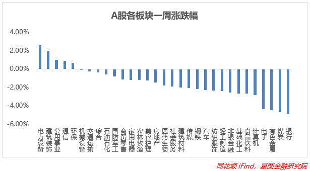 本周开盘31个板块中只有1个板块微跌(食品饮料,-0.15%),其余板块均一转跌势实现回血。