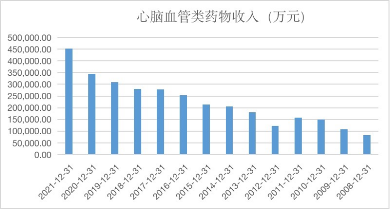 (以岭药业心脑血管类药物收入变化,来源:钛媒体APP制图)