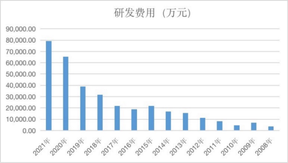 任市场变幻、争议喧嚣,专注研发始终是以岭药业坚守的真理。早在2008年,公司研发费用3605.33万元,占营收的比重为3.84%。此后,公司研发投入逐年增加,到2021年,研发支出高达8.38亿元,占营收比重也提升至8.28%。