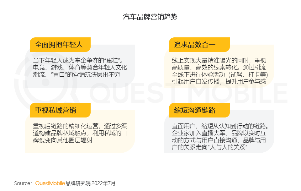 3、依托社交平台的发展,车企正走向年轻化营销、前链路精准触达+后链路精细运营,同时直面用户缩短沟通链路的营销策略