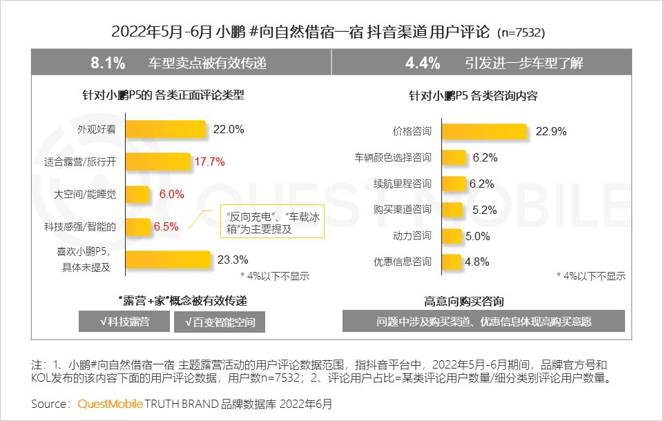 露营场景的渲染让用户潜在需求显性化,也让小鹏P5【科技露营】这一核心标签被成功关联。