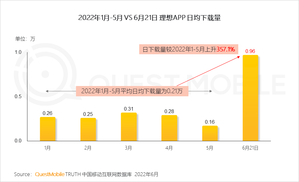 2.3 新车直播发布会大大提升了理想APP的活跃用户规模和下载量;当天理想APP下载量较2022年1月-5月平均日下载量提升了357.1%