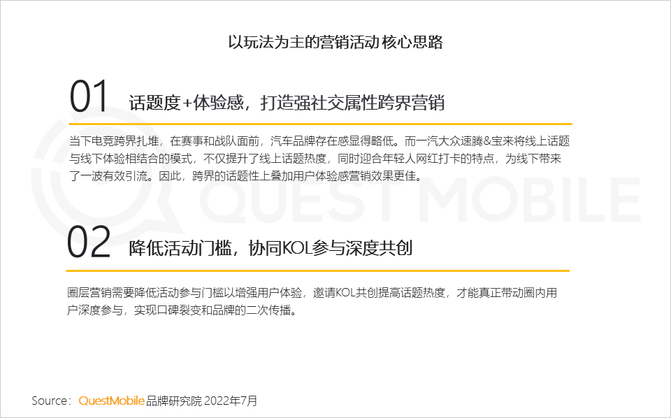 8、“热”话题+“强”体验是跨界、圈层此类注重营销玩法的关键要素;找到与年轻人共通的文化并制造话题,同时创造顺应年轻人的沟通触点带动深度参与,让年轻人感受品牌态度