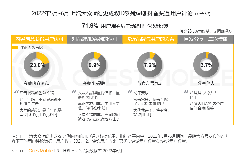 1.4 【上汽大众】ID系列短剧的创意触动了不少用户代入其中;部分“观众”在评论中主动提及了对品牌/ID系列的认可,甚至在评论中分享他人,无形间为品牌创造了二次传播机会
