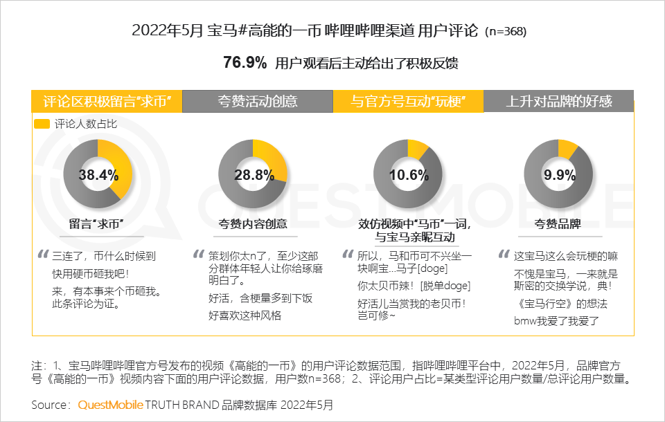 6、【宝马】基于哔哩哔哩平台特有的“投币”传统,向粉丝“反向投币” ,调动了站内用户的参与积极性