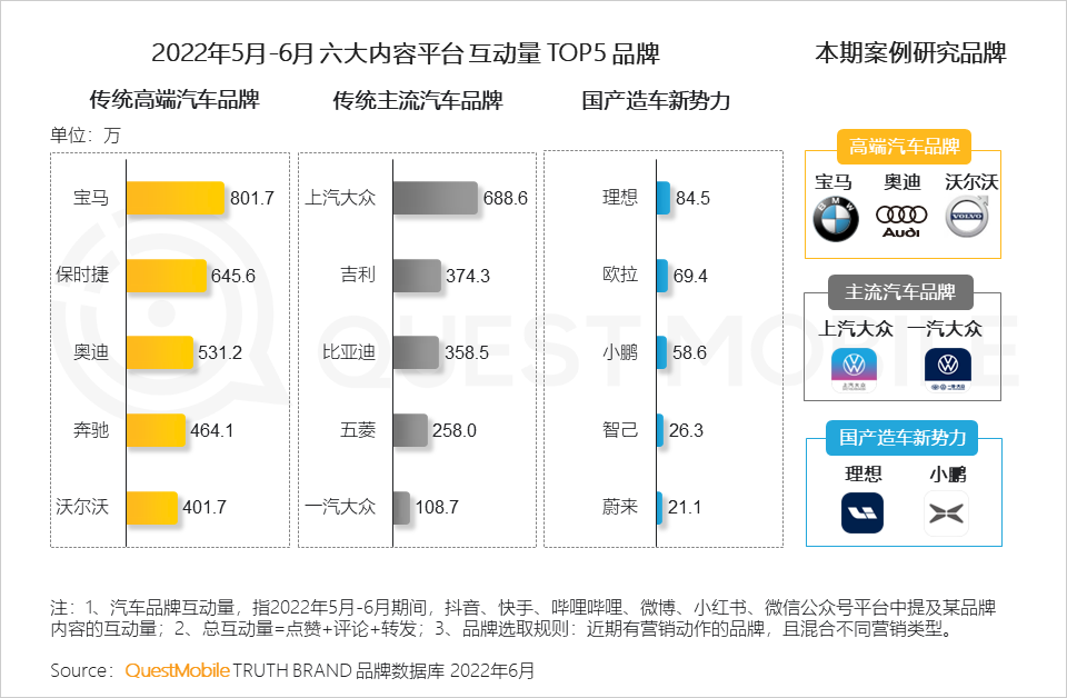 5、本期节选部分高端、主流、新势力品牌作为重点研究对象,分析用户在平台上的留言和评论,站在用户视角评估营销活动有效性