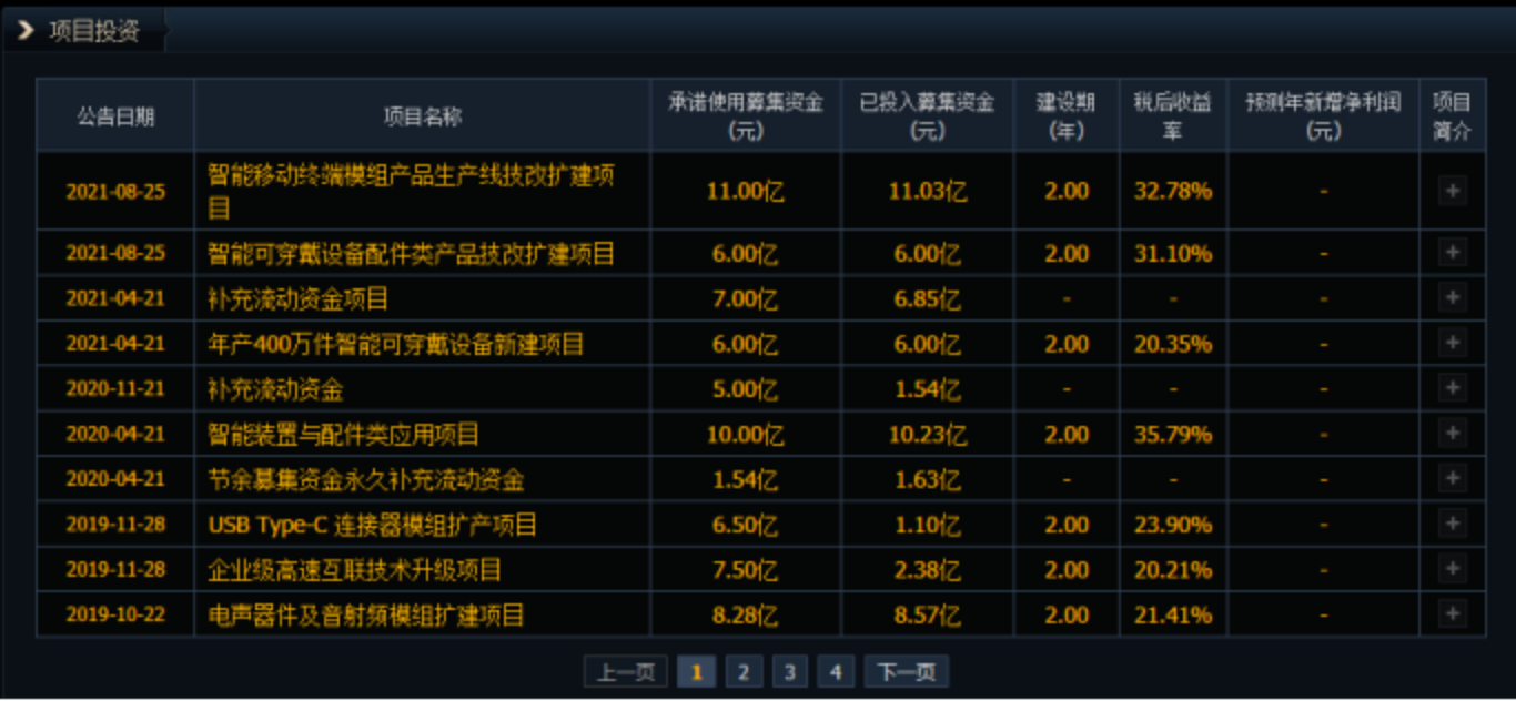 尝到成为苹果供应商的甜头之后,果链企业也是乘胜追加产线,争取吃到最大的份额。其中立讯精密在2019年扩产项目多达4个,投资金额达27.48亿,相当于把2018年的利润全部投入扩产线,但在大步向前的同时却买下了隐患。