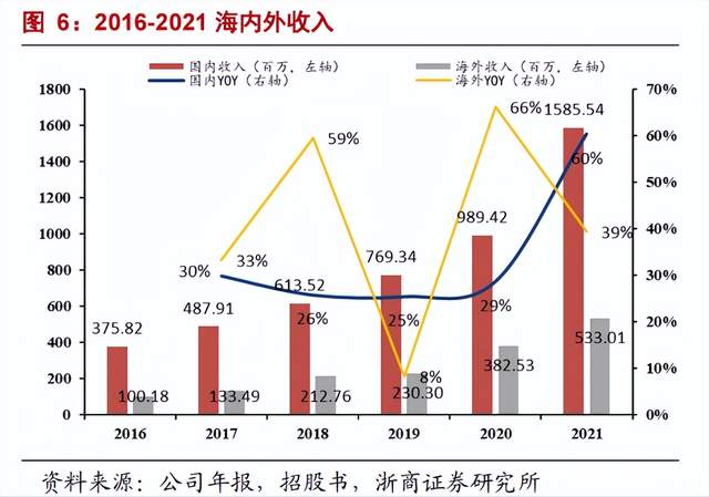 目前,海尔生物找到的路径之一是加速国际化。2016-2020 年,公司海外业务复合增速为39.9%,大于国内业务增速。截至2021年末,海尔生物海外经销网络总数超过500家,当年新增208家,海外市场实现收入5.33亿元,同比增长39.34%。