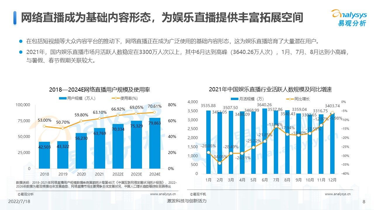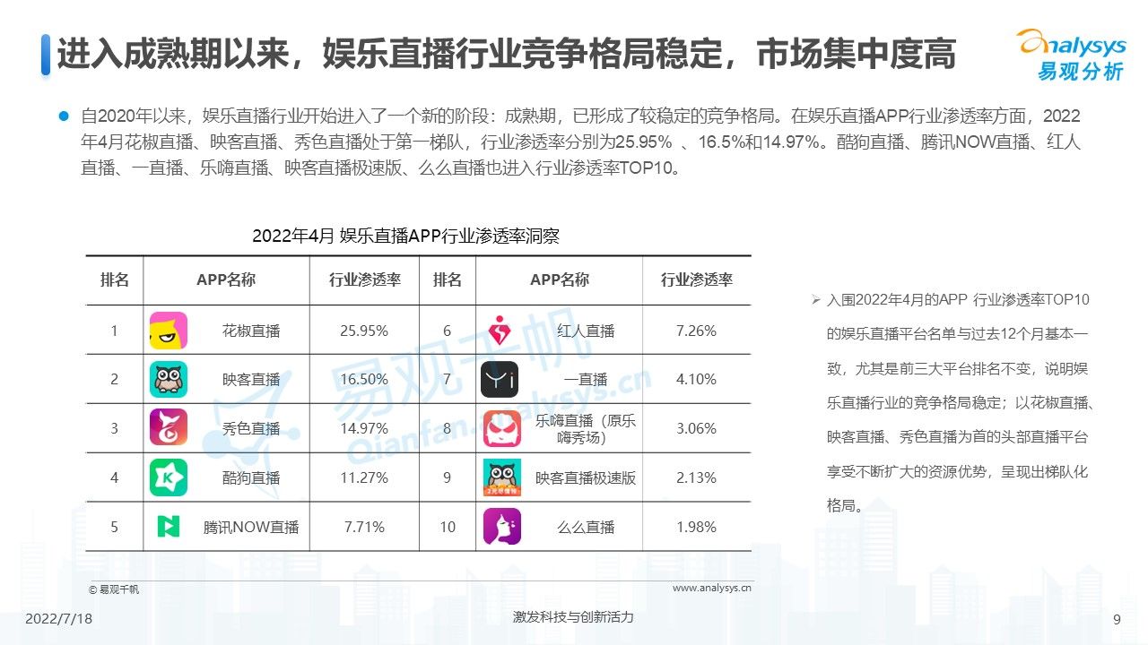 中国娱乐直播行业已进入成熟期,娱乐直播内容的承载力不断提升