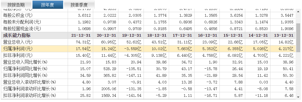 而更有意思的是,如果把时间线拉长来看,从2018年—2021年,汤臣倍健的营业收入实际增幅依次为39.86%、20.94%、15.83%和15.38%,连续四年营收增速放缓。在净利润方面,2019年汤臣倍健因巨额商誉减值经历了4.15亿元的大额亏损,但抛开2019、2020这两个特殊年份,2021年15.07%的归母净利增长也远低于2017年和2018年的43.17%和30.78%的同比增幅。