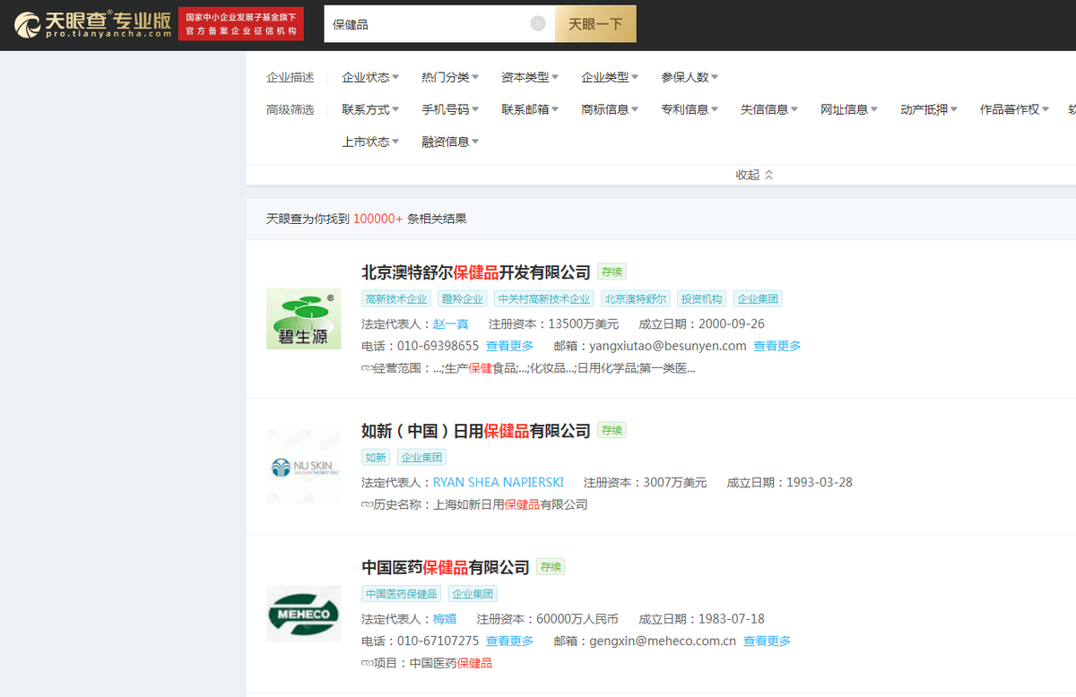 除此之外,在2018年初飞鹤就收购了从事营养补充剂零售保健业务的Vitamin World USA(美维仕);安琪酵母则是推出了主打人类营养健康产品的子品牌安琪纽特。而天眼查APP更是显示,现在有关保健品的企业已超过了十万家……