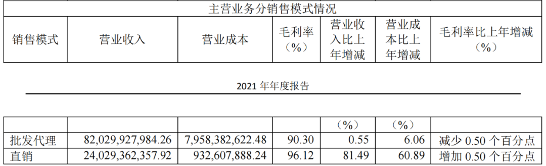 虽然批发代理的毛利润要低于直销的毛利润,但这种简单粗暴的代理模式依然有着让各行各业都为之羡慕的90.30%毛利润率。