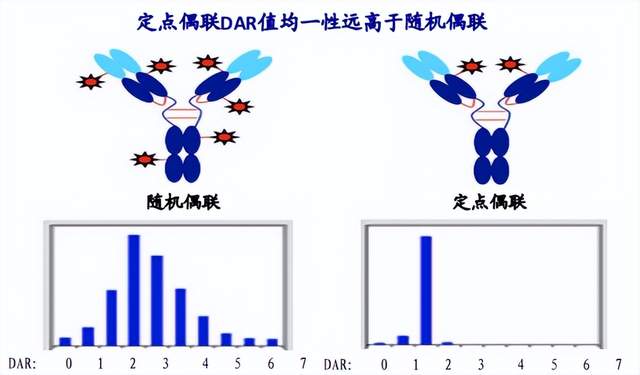 目前获批的ADC药物,所采用的全部是随机偶联技术。随机偶联技术难以控制,选择性很差,产物中的DAR往往分布广泛,这就给药物的CMC( 化学、生产、控制 )带来了很大的难度。对于药物来说,高精度已然成为必须要素,显然随机偶联技术难以符合这一要求。