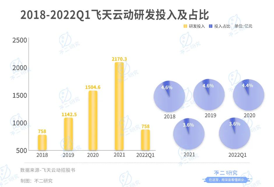 2018-2021年及2022第一季度,其研发投入分别为758万、1142.5万、1504.6万、2170.3万及815.2万元,当期营收占比仅为4.6%、4.6%、4.4%、3.6%及3.6%。