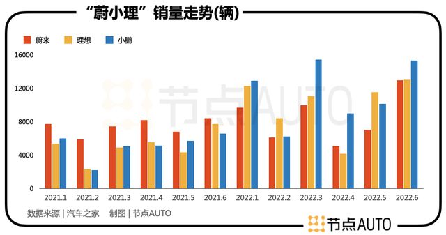 理想的表现与小鹏相似。在去年上半年,理想的销量止步于8000辆,且波动范围在2000辆-8000辆之间。