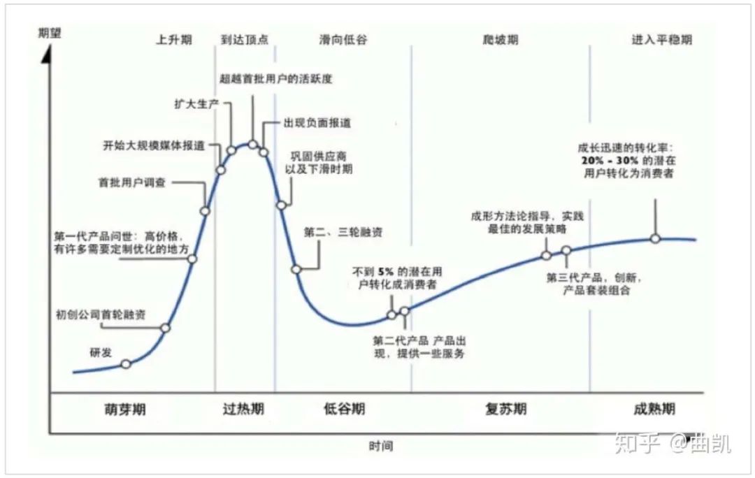 第一个高点是滑向低谷前的过热期,第二个高点是进入平稳期之前的爬坡期。