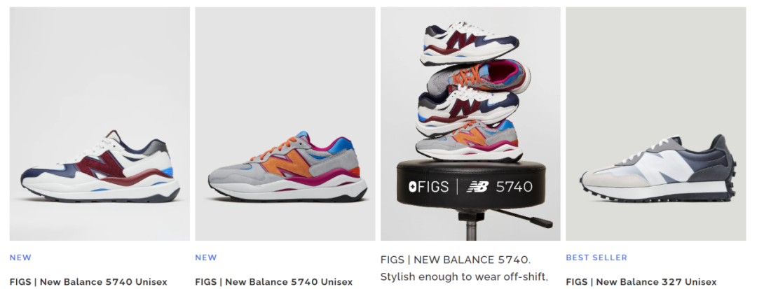 顺便一提,笔者观察到 FIGS 在医护服相关品类的拓展方面又有了一些新的动作,比如与 new balance 联名推出了“医护运动鞋”、推出了面向医学生的医护服等。