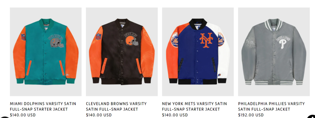 “潮流”、“运动”似乎已经是资本非常看重的服装类品牌的卖点。今年 2 月份,美国本土品牌 STARTER 获得了 4000 万美金的 C 轮融资,该品牌同样主打的是潮流服饰,同时品牌与 NBA、NHL 等美国四大联盟达成合作,推出印有四大联盟印花和配色的服装。