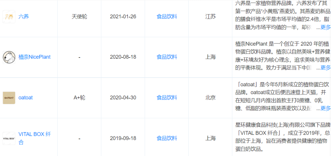 据亿欧智库统计,从2019年7月到2021年8月,共有10个本土植物奶初创品牌拿下了17轮融资。