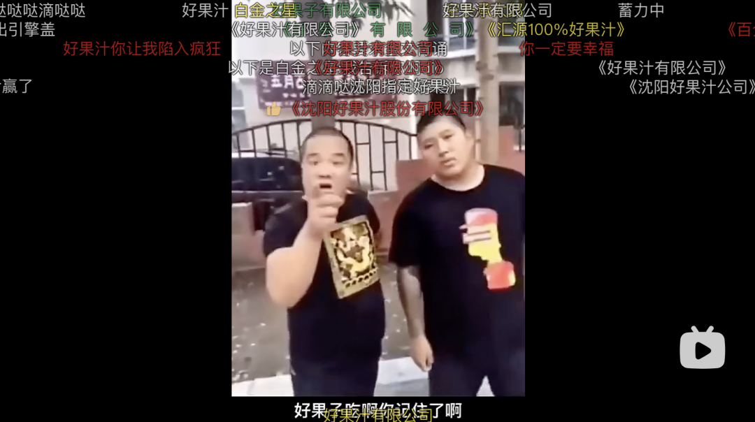 但狗粉丝们臆想中的“孙笑川大战陈冠希”类似的事件并没有发生,B站天生带有的解构和玩梗精神反而同化了这些视频,B友们在反复咀嚼“虎哥大战杀马特团长”系列视频后找到了快意。“我是个傻X”的独立宣言被一遍又一遍模仿,而人们还在争相说着“好果汁”。