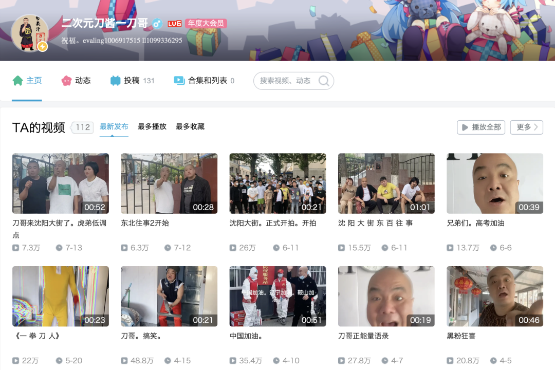 在东北往事中表现最为拉胯的配角刀哥,反而成为了最大受益者,转战B站后,刀哥敏锐地抓到了反差感这一流量密码,给自己取名为“二次元-刀酱”,穿上cos服扮演“歌姬”。如今,他全网粉丝甚至达到了百万。