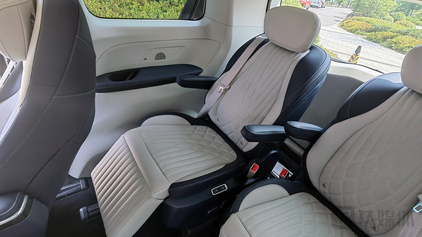 6.第三排可选7座和6座版本,而6座版座椅和第二排除了没有触控屏之外基本一致,并且拥有多方电动调节。