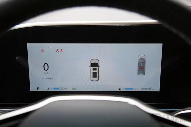 驾驶席前方的10.25英寸全液晶仪表盘,显示内容丰富,包括AR导航模式,车外物体检测等功能,在驾驶时包括道路标识、实景标线等也都有显示,表达方式简洁易懂,可以看出工程师下了不小功夫,绝不是敷衍的样子货。
