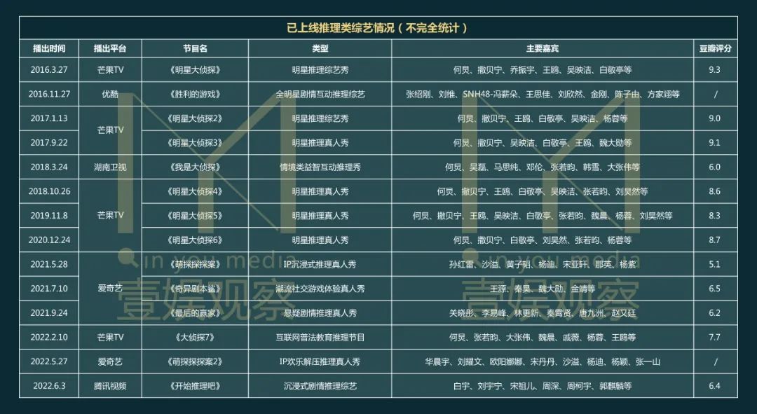 如果都能兑现和成型,可以预见推理综艺赛道的竞争会更加激烈。