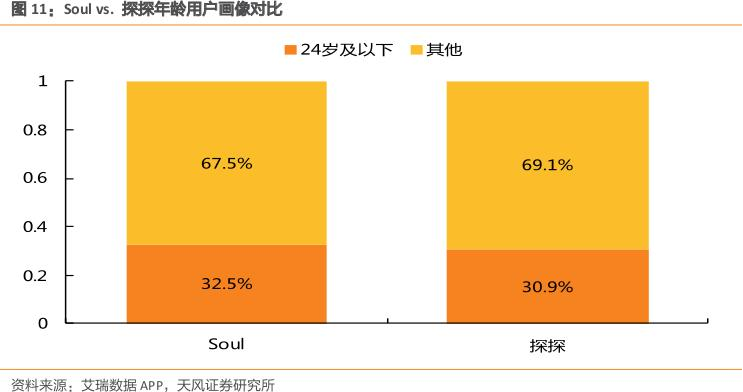 从用户画像看,Soul和探探的用户年龄分布很类似。