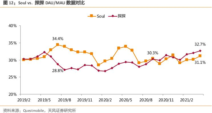 到2021年3月,Soul平均DAU和平均MAU分别上升至910万和3320万。