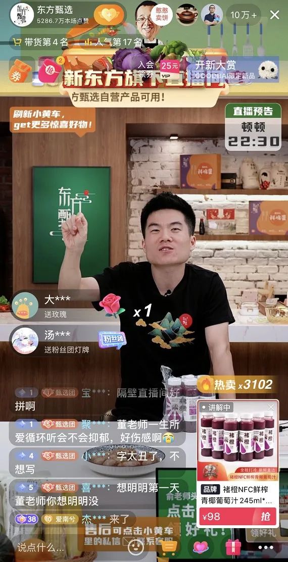 图/东方甄选直播间董宇辉的直播,来源/抖音 燃财经截图