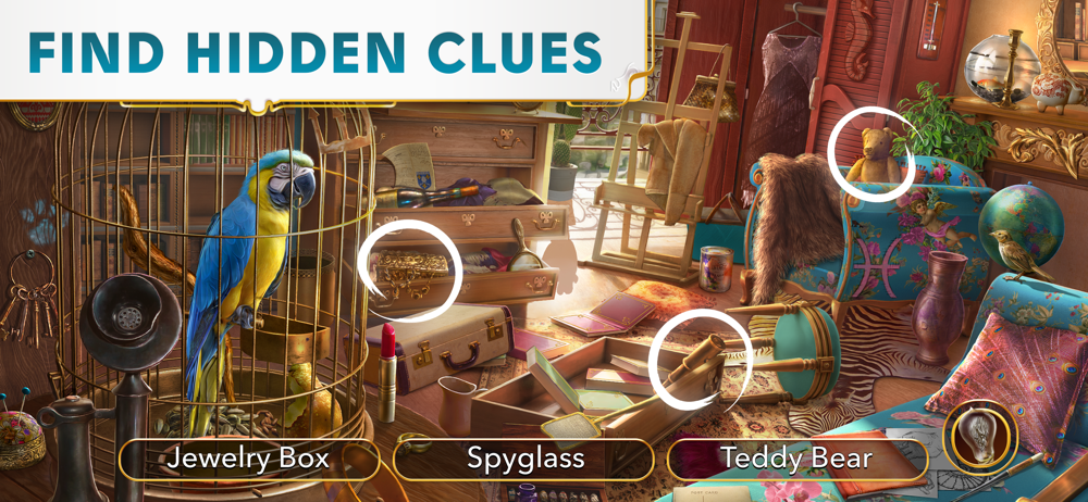 在介绍「Flashback」的游戏机制之前,我们先来回顾一下传统寻物解密类游戏的机制。这类游戏大多会给出一个固定的静态场景图片,然后从中找到完成解谜的所有物品。这里面的典型头部产品是 wooga 旗下的探案主题游戏「June's Journey: Hidden Objects」。