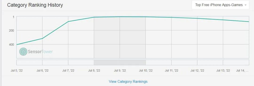 「Flashback」曾一度位居美国 iOS免费手游榜第 7 位 | 图片来源:Sensor Tower