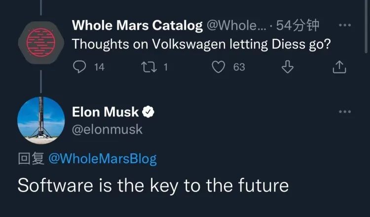 对于迪斯的离任,一定少不了马斯克的声音,“软件是通往未来的钥匙”。
