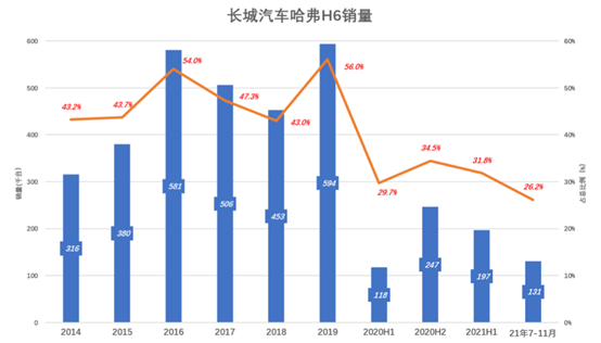 图片:哈弗H6销量变化 来源:虎嗅APP
