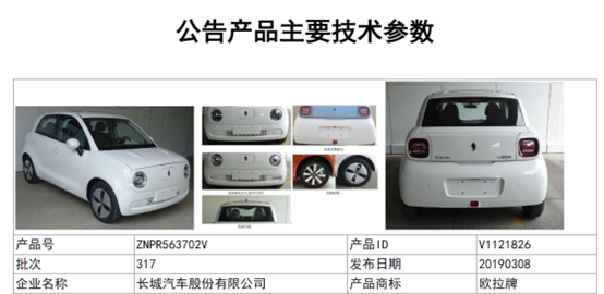 图:欧拉R1(黑猫)注册信息 来源:工信部