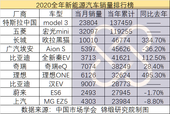 但随着2020年特斯拉上海工厂投产出货,整个新能源汽车行业开始逆势反转。2020年2月,特斯拉中国交付了3900辆model 3,当年销量超13万辆,位列新能源交付榜第一位。